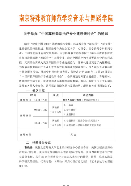 【会议通知】中国高校舞蹈治疗专业建设研讨会