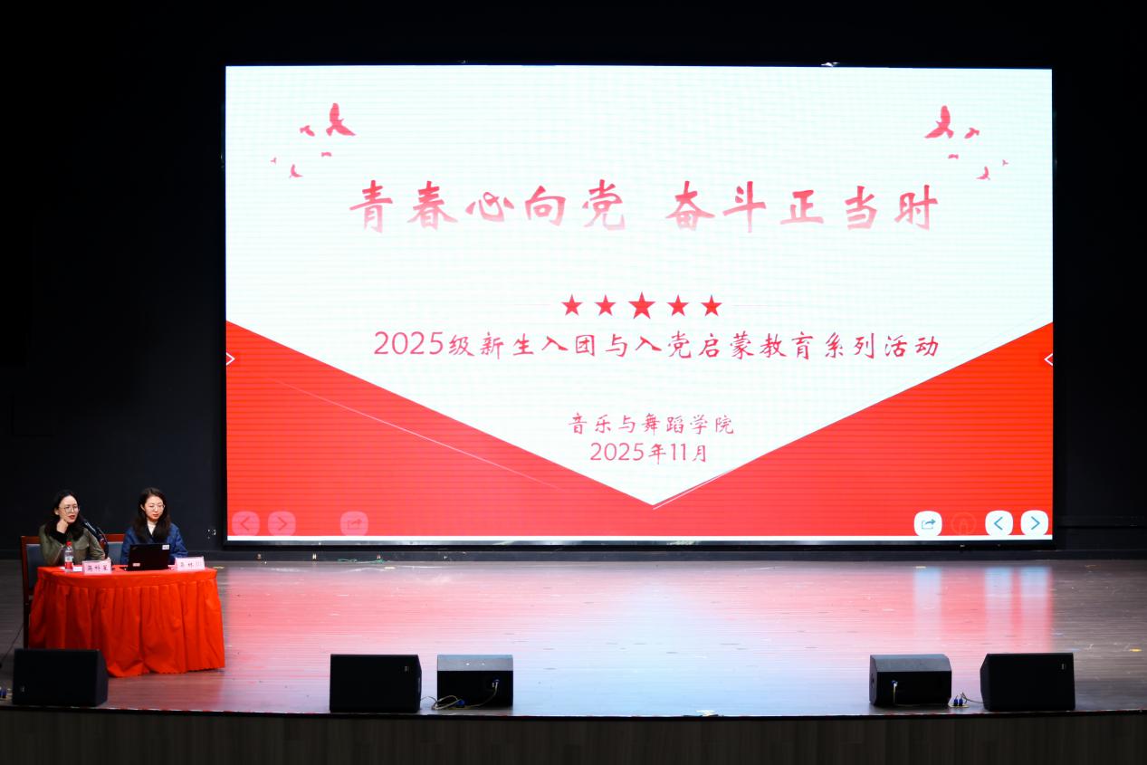 为引导新生筑牢信仰根基、强化政治品格、明确使命担当,11月5日,音乐与舞蹈学院在大学生活动中心隆重举行2025级新生入团入党启蒙教育系列活动。本次活动围绕“筑牢理想信念,引领青春航向”主题,系统开展政治导航与思想启蒙,帮助新生系好大学生涯的“第一粒思想扣子”。活动由学生第二党支部书记吴林烜老师主持。