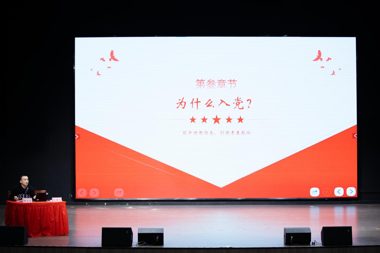 辅导员徐宇佳老师围绕“为什么要入党”与“如何争取入党”两大主题,为同学们带来入党启蒙专题讲解。他从中国共产党的奋斗历程讲起,阐述了党的先进性和纯洁性,详细说明了入党流程与党员标准,并通过身边党员师生的真实故事,诠释“为人民服务”的宗旨内涵。他鼓励同学们立大志、明大德,在专业学习与社会实践中锤炼党性,努力成长为可堪大用、能担重任的时代新人。