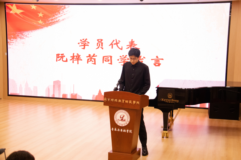 学员阮梓芮作为同学代表发言:“以此为始,知行合一。我将持续学习党的理论,筑牢思想根基,努力把学习成果转化为担当作为的实际行动——在专业学习上刻苦钻研,在服务同学中无私奉献,用青春的笔触书写忠诚,以奋斗的姿态向党靠拢,争取早日在党旗下庄严宣誓,成为一名光荣的中国共产党党员。