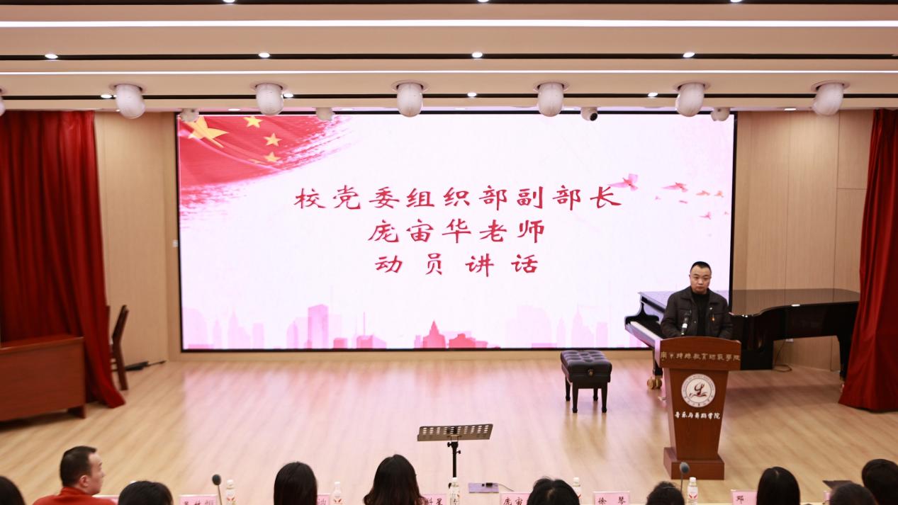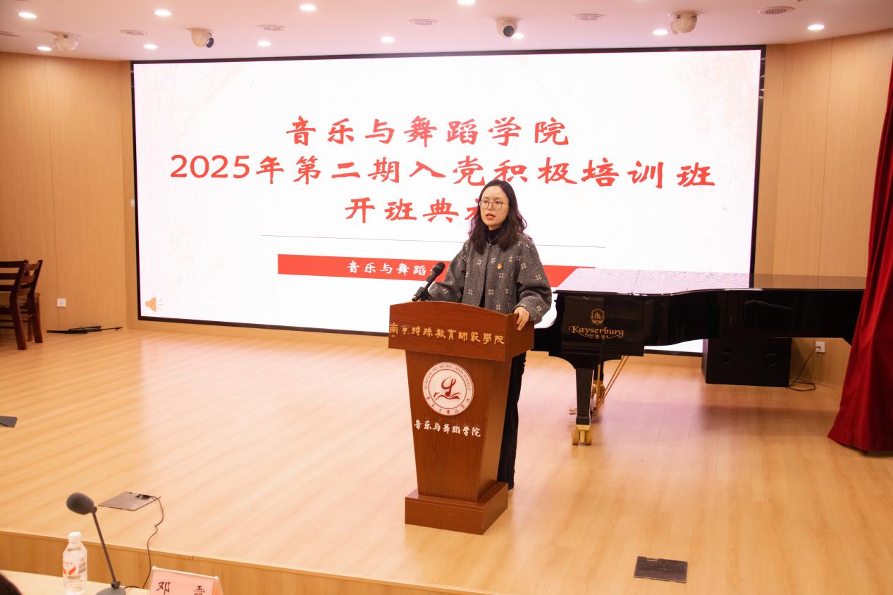 为深入学习贯彻党的二十大和二十届四中全会精神,创新党员教育培训形式,11月6日,音乐与舞蹈学院党总支举行2025年第二期入党积极分子培训班开班仪式,校党委组织部副部长庞宙华老师莅临指导,院党总支书记蒋科星、副书记徐琴、全体辅导员及全体培训班学员参加活动。