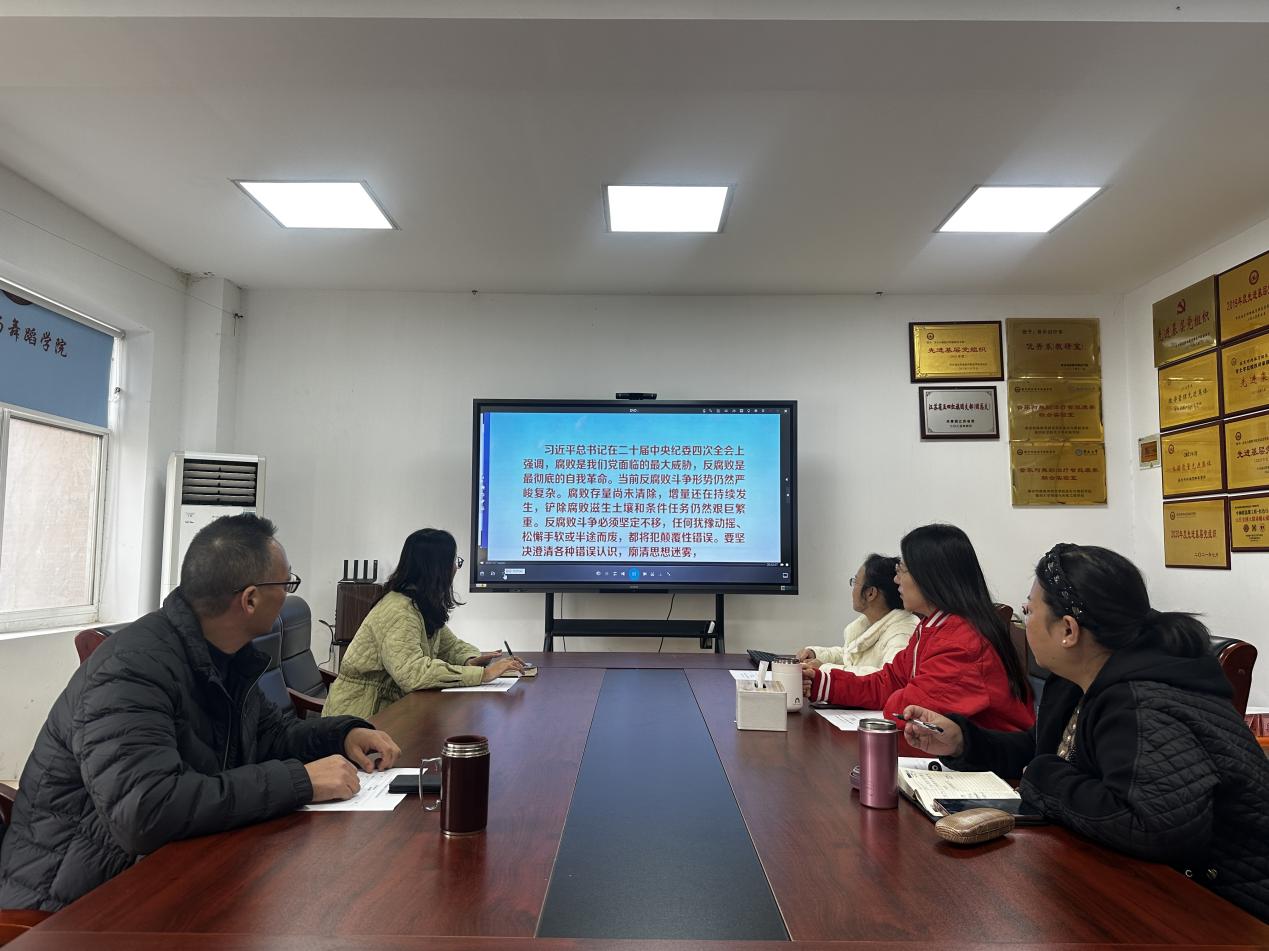 在党总支理论学习中心组(扩大)学习会上,学院领导班子成员、各党支部书记以及行政人员集中观看了《坚决打好反腐败斗争攻坚战持久战总体战》。专题片通过剖析违纪违法典型案例,深刻揭示了腐败的严重危害,警示“关键少数”必须时刻绷紧纪律之弦。与会人员结合分管工作深入研讨,一致表示要深刻吸取教训,将纪律建设融入教育教学和教育管理全过程,带头营造清正廉明的政治生态。