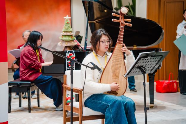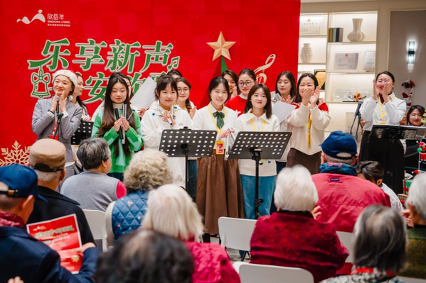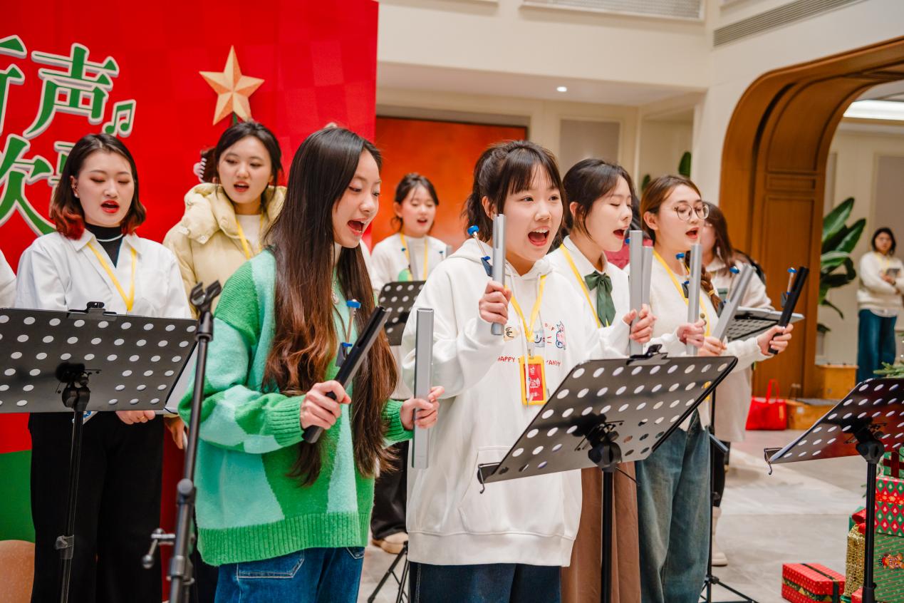 随后,学生们轮番登场,带来了形式多样的精彩表演。婉转悠扬的歌曲演唱、灵动悦耳的乐器演奏轮番上演,每一个节目都经过师生团队的精心打磨,既贴合老人们的审美喜好,又融入了音乐治疗的专业理念,用舒缓治愈的旋律为长辈们驱散冬日的寒凉。从温柔缱绻的《雪绒花》,到质朴豁达的《张三的歌》,一首首经典曲目在师生们的演绎下焕发新生,时而轻柔婉转,时而温情脉脉,赢得了长辈们阵阵掌声,不少长辈跟着旋律轻轻哼唱,脸上洋溢着幸福的笑容。
