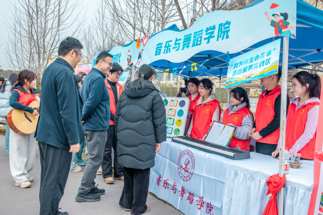 “我为师生办实事”志愿服务实践区则聚焦师生日常需求,提供暖心便民服务。针对零基础师生开设简谱识读、基础乐器弹奏等音乐学习体验,让大家近距离感受音乐魅力、解锁艺术技能;同时设置舒缓解压舞蹈教学专区,通过轻柔的肢体舒展动作,帮助师生释放学业与生活压力。多元的艺术服务既为校园增添了暖意,更切实提升了师生的幸福感与获得感。