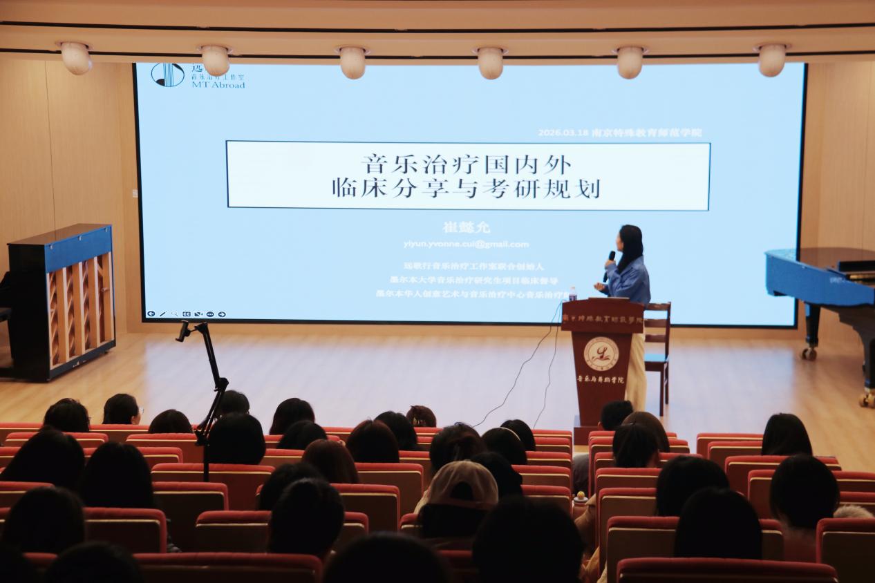 3月18日,音乐与舞蹈学院特邀注册音乐治疗师崔懿允,在博韵楼音乐厅举办“音乐治疗国内外临床分享与考研规划”讲座,为师生解读行业现状、规划考研与职业路径,音乐治疗系教师齐若雯、李冰及音乐治疗专业学生参与此次活动。