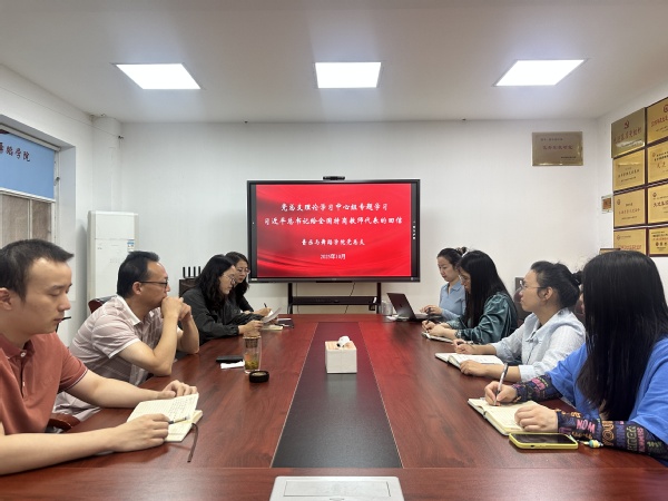 10月13日下午,音乐与舞蹈学院党总支在会议室开展党总支理论学习中心组学习,专题学习了习近平总书记给全国特岗教师代表重要回信精神,党总支委员参加会议,学习会由党总支书记蒋科星主持。