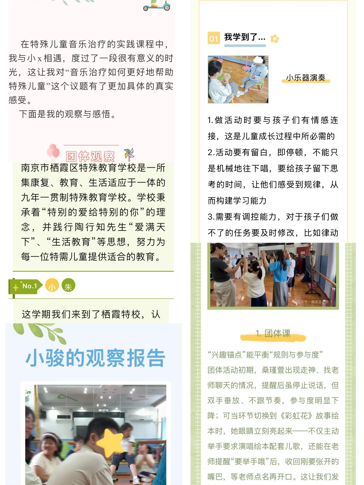 自开设以来,《特殊儿童音乐治疗》已走过南京儿童医院、中央路小学、长江路小学、鼓楼区特殊学校、育智学校等多个实践基地。本学期落脚栖霞特校,是课程“行走”理念的延续。