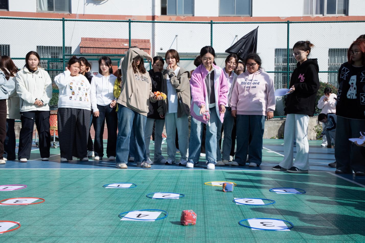 在“扔沙包”项目中,赛场气氛由动态的奔跑转为静态的专注。队员们凝神静气,站在投掷线前瞄准、挥臂、投掷。一道道优美的弧线划过空中,沙包精准地落向目标区域。每当有投掷命中高分区域,现场便爆发出阵阵喝彩与赞叹;即便未能命中,队友们也会送上温暖的掌声。这个项目在紧张激烈的竞争中,平添了几分轻松与欢乐,让同学们在竞技之余,也享受到了纯粹的游戏乐趣。