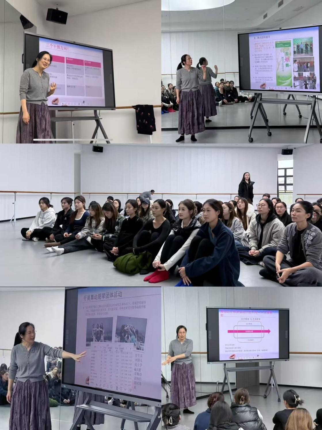 2025年11月07日下午,音乐与舞蹈学院在实训楼综合舞蹈房成功举办“舞动治疗的多场景应用与干预实践”工作坊。本次活动特邀北京舞蹈学院副教授、中央美术学院艺术治疗硕士研究生导师、注册德国舞动治疗师、中国艺术医学协会理事赵妍老师担任主讲,聚焦舞动治疗在不同环境下的应用拓展与干预实践。学院舞蹈治疗与相关专业部分师生参与活动。