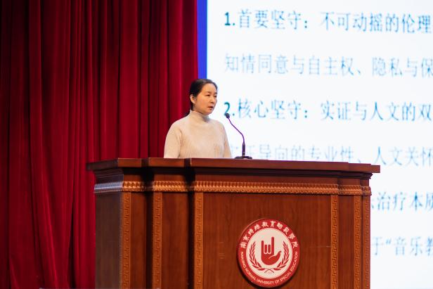 主旨报告环节汇聚了多位行业顶尖专家,分享兼具理论深度与实践价值的洞见:上海音乐学院音乐教育系杨燕宜教授系统梳理音乐康疗学科发展脉络,探讨学科交叉融合路径及发展中的关键问题。中央民族大学王冰副教授深入解析“反思性实践”在音乐治疗师培养中的核心价值与应用。中央音乐学院音乐治疗专业刘明明副教授系统介绍国内顶尖院校在专业课程设置、师资队伍建设、临床实践基地构建等方面的成熟经验。张婧雯博士分享美国音乐治疗学科建设经验,为国内高校提供有益借鉴。南京特师音乐与舞蹈学院前音乐治疗系主任胡世红副教授:以《目录外音乐治疗专业申报历程回望》为题,复盘专业申报的难点突破与宝贵经验。中科院心理研究所陈葸静研究员(兼中国音乐治疗学会秘书长)、马来西亚音乐治疗师林佳仪:则从临床实践出发,分享音乐治疗的实证应用成果。 多维度的前沿分享,为高校音乐治疗专业建设注入了多元化思路与新动力。